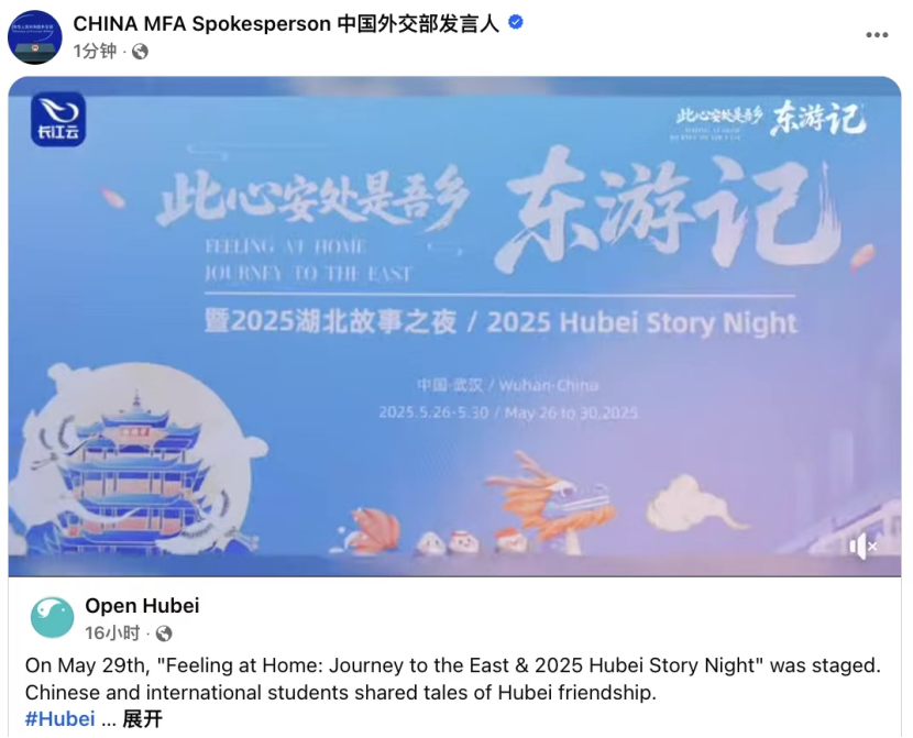 “此心安处是吾乡”国际网络传播品牌自创立以来,始终以故事为核心、情感为纽带、“外嘴发声”为特色,通过与多元IP深度联动,让中国故事更具国际可信度与传播穿透力。2024年,该品牌活动推出《此心安处是吾乡》系列短视频,以外国大V第一视角,从投资中国、商贸往来、生活融入、文化交流等多维度,真实生动地展现在华外籍人士积极融入中国社会的美好图景。2025年,该品牌精心打造“东游记”主题活动,邀请多国博主和留学生沉浸式体验湖北历史文化底蕴和科技创新活力,并在2025湖北故事之夜活动中讲述自己与中国的故事。