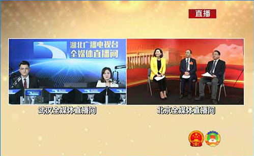 2019全国两会报道围绕政府工作报告解读,推出系列全媒体直播节目,首次实现北京直播间与武汉直播间“隔空联播”