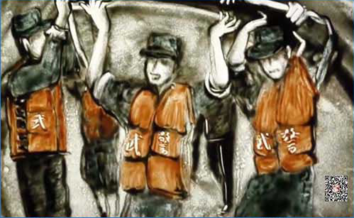 抗洪沙画《不忘初心 砥柱中流》,入选《砥砺奋进的五年》国家大型成就展,荣获第二十七届中国新闻奖